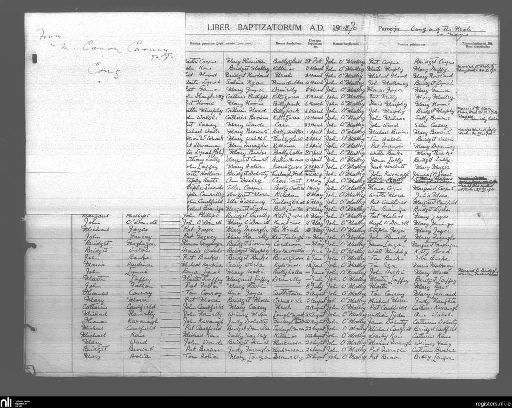 Cong and The Neale; County of Mayo, Galway; Archdiocese of Tuam. Baptisms, Feb. 1870 to Aug. 1870