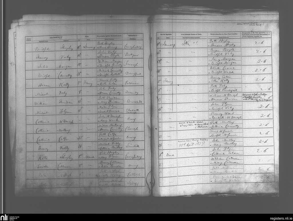 Crossboyne and Taugheen; County of Mayo; Archdiocese of Tuam. Baptisms, Jan. 1879 to Mar. 1879
