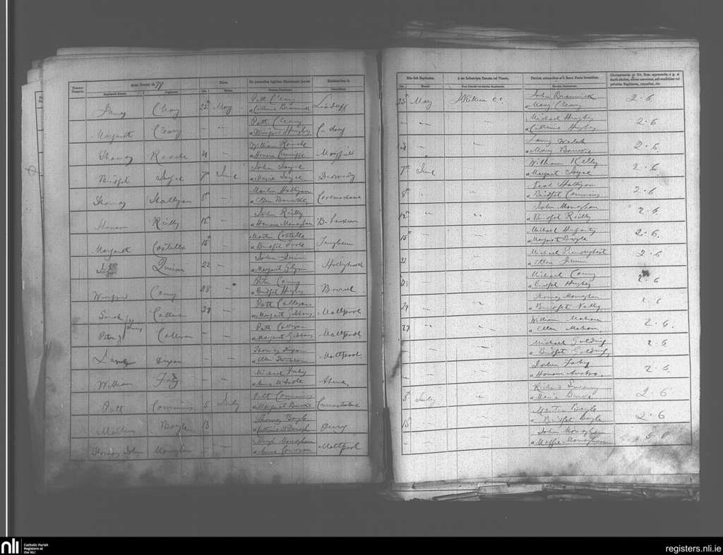 Crossboyne and Taugheen; County of Mayo; Archdiocese of Tuam. Baptisms, May 1879 to July 1879