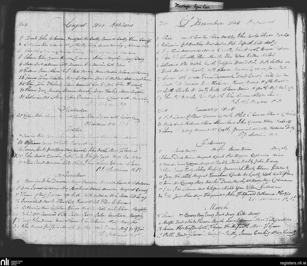 Clountead, Ballingarry and Ballymartle; County of Cork; Diocese of Cork and Ross. Baptisms, Aug. 1844 to Mar. 1845
