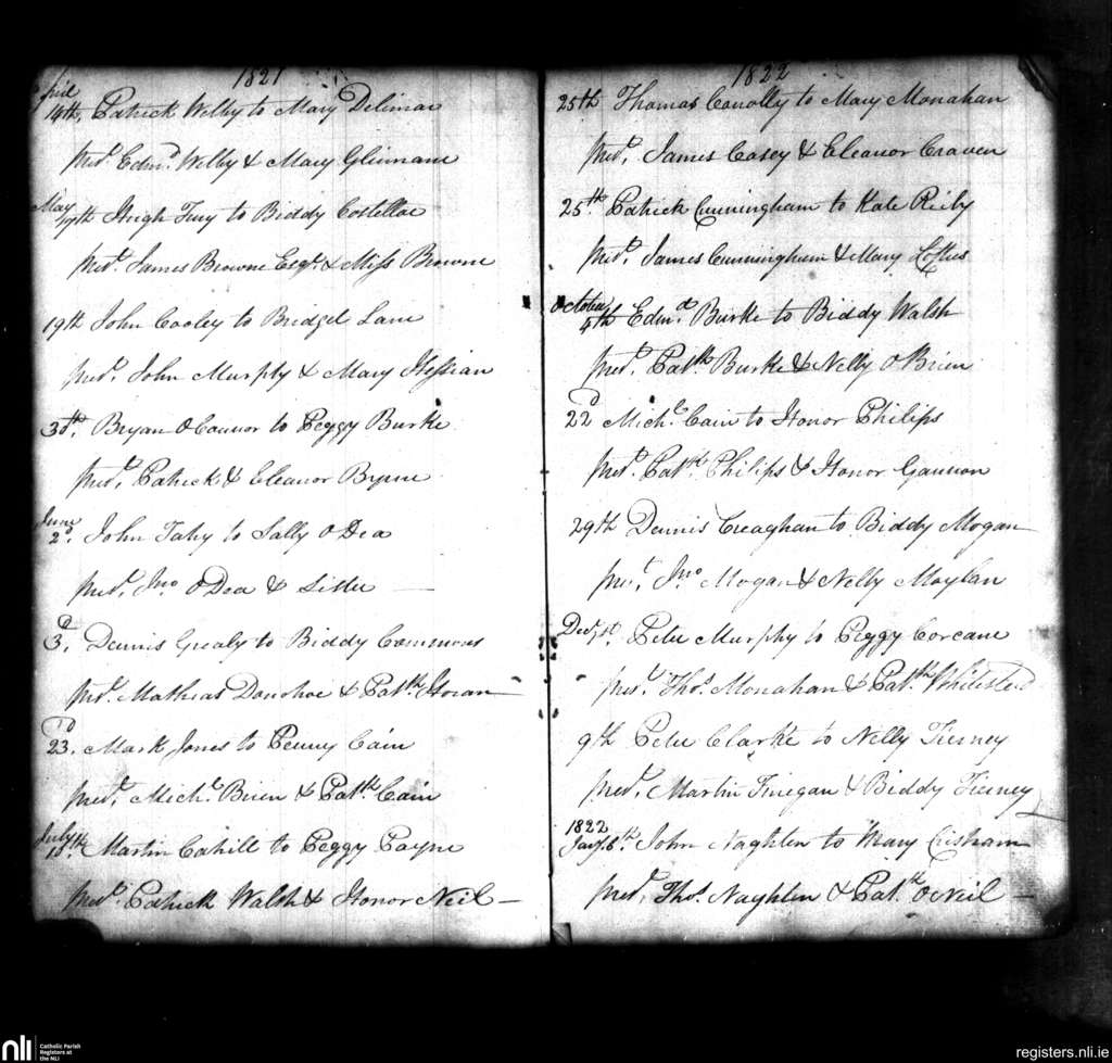 Kilmoylan; County of Galway; Archdiocese of Tuam. Marriages, Apr. 1821 to Jan. 1822