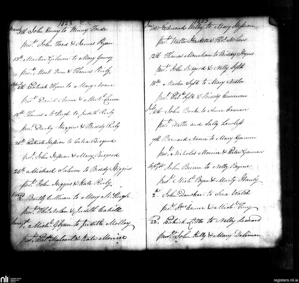 Kilmoylan; County of Galway; Archdiocese of Tuam. Marriages, Mar. 1823 to Sep. 1823