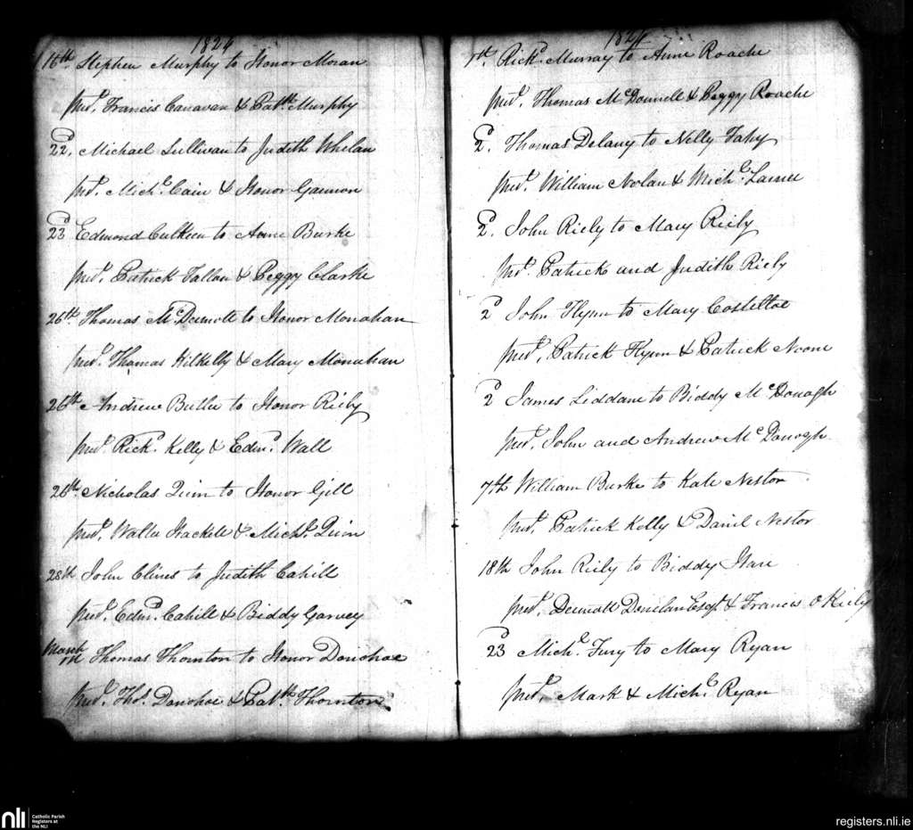 Kilmoylan; County of Galway; Archdiocese of Tuam. Marriages, Feb. 1824 to Mar. 1824