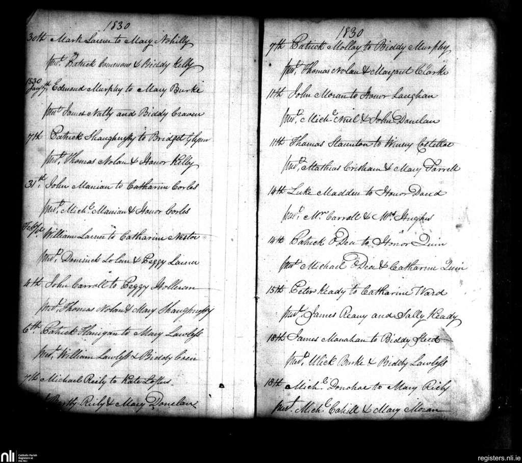 Kilmoylan; County of Galway; Archdiocese of Tuam. Marriages, Dec. 1829 to Feb. 1830