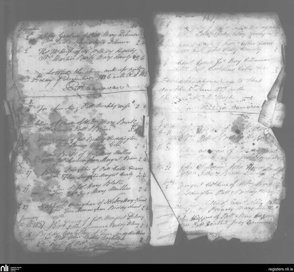 Kilmoylan; County of Galway; Archdiocese of Tuam. Baptisms, Dec. 1836 to July 1837