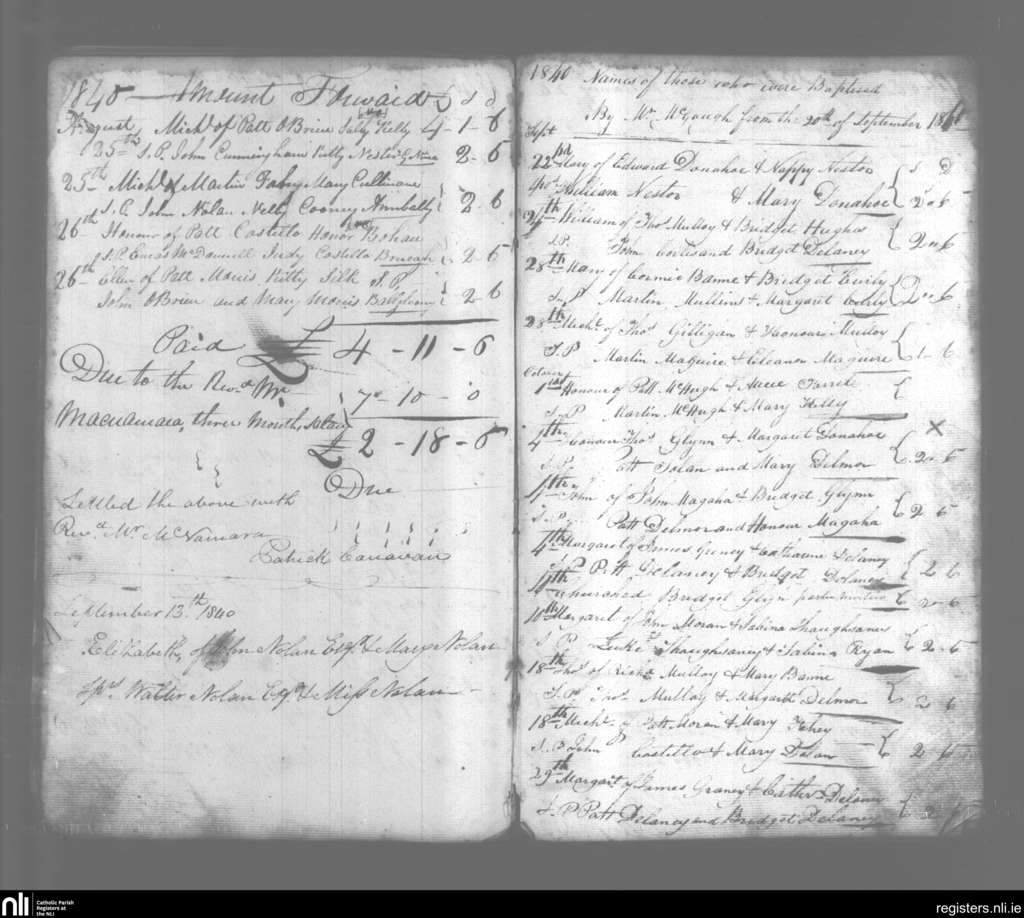 Kilmoylan; County of Galway; Archdiocese of Tuam. Baptisms, Aug. 1840 to Oct. 1840