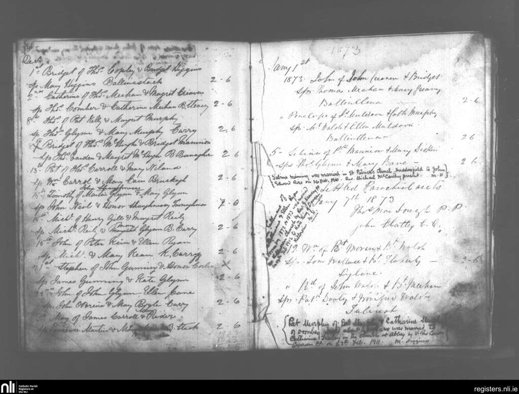 Kilmoylan; County of Galway; Archdiocese of Tuam. Baptisms, Marriages, Dec. 1872 to Feb. 1912