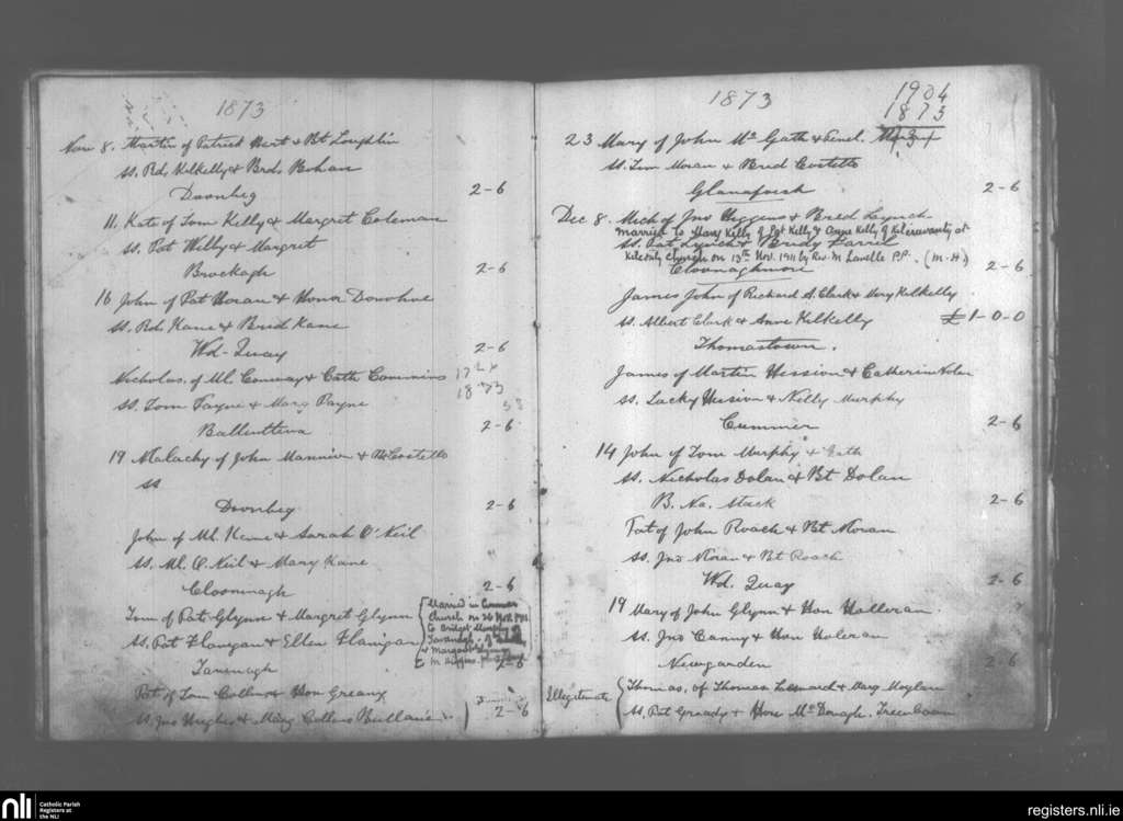 Kilmoylan; County of Galway; Archdiocese of Tuam. Baptisms, Marriages, Nov. 1873 to Nov. 1911