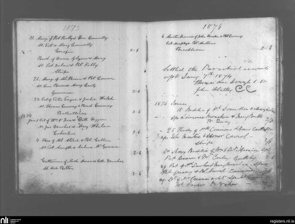 Kilmoylan; County of Galway; Archdiocese of Tuam. Baptisms, Dec. 1873 to Jan. 1874