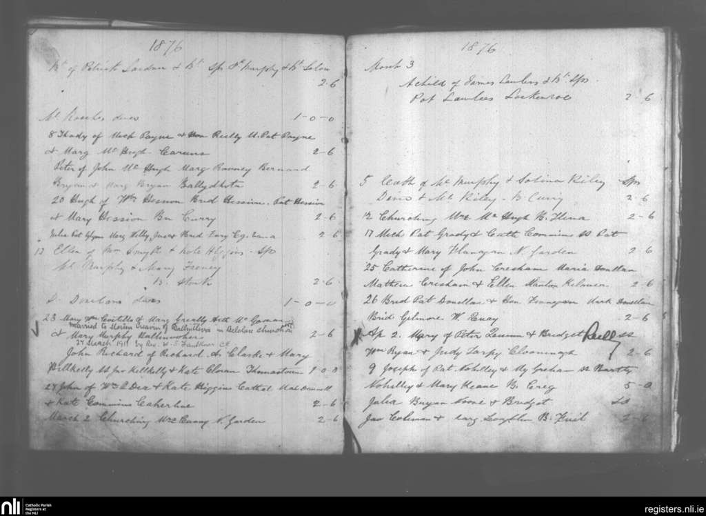 Kilmoylan; County of Galway; Archdiocese of Tuam. Baptisms, Marriages, Feb. 1876 to Mar. 1911