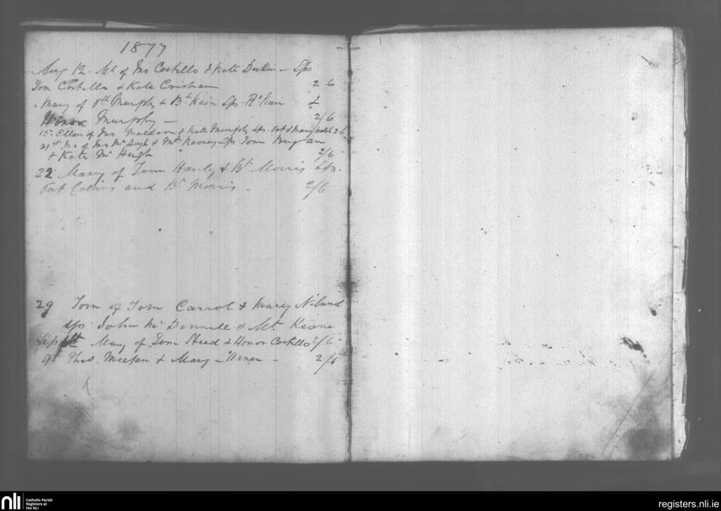 Kilmoylan; County of Galway; Archdiocese of Tuam. Baptisms, Aug. 1877 to Sep. 1877