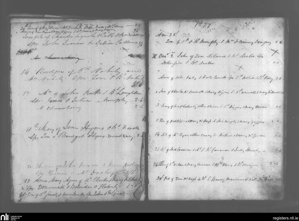 Kilmoylan; County of Galway; Archdiocese of Tuam. Baptisms, Nov. 1877 to Dec. 1877