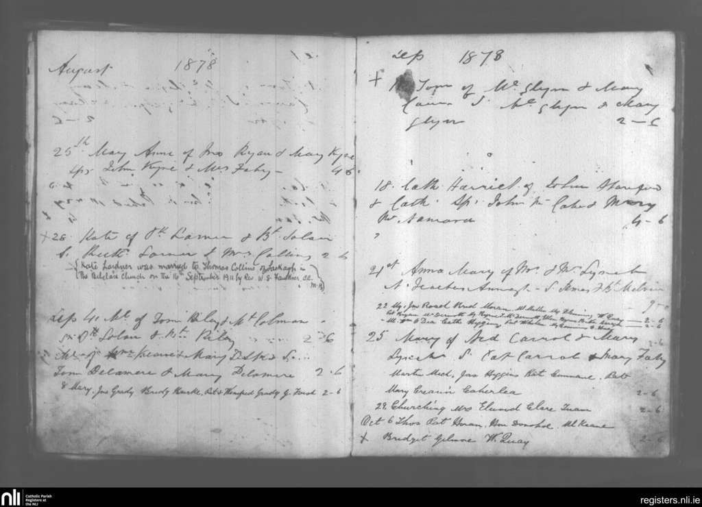 Kilmoylan; County of Galway; Archdiocese of Tuam. Baptisms, Marriages, Aug. 1878 to Sep. 1911