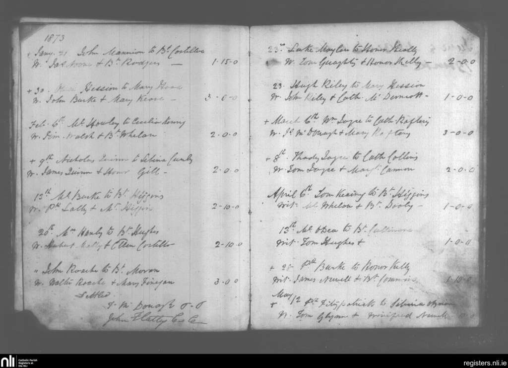 Kilmoylan; County of Galway; Archdiocese of Tuam. Marriages, Jan. 1873 to May 1873