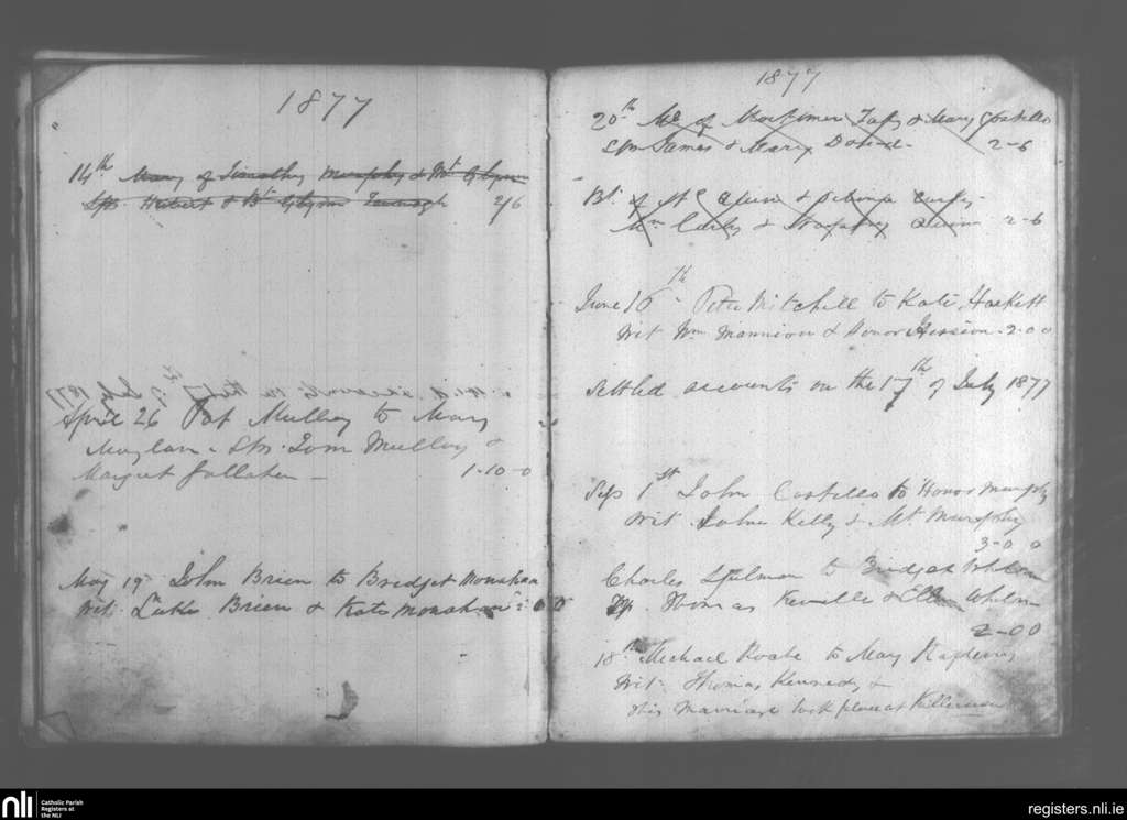 Kilmoylan; County of Galway; Archdiocese of Tuam. Marriages, Apr. 1877 to Sep. 1877