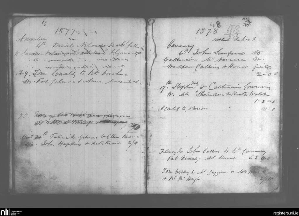 Kilmoylan; County of Galway; Archdiocese of Tuam. Marriages, Nov. 1877 to Feb. 1878