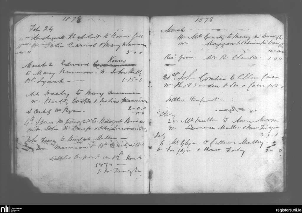 Kilmoylan; County of Galway; Archdiocese of Tuam. Marriages, Feb. 1878 to July 1878