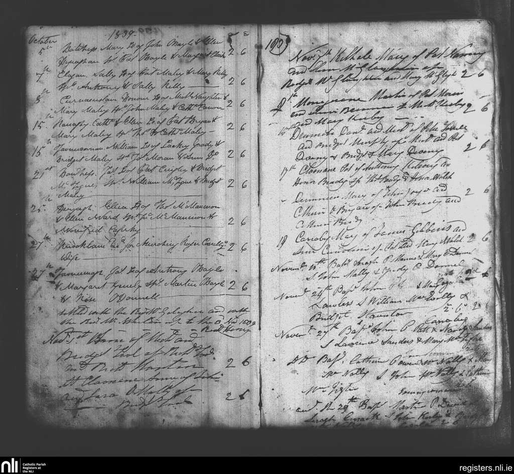 Islandeady; County of Mayo; Archdiocese of Tuam. Baptisms, Oct. 1839 to Nov. 1839