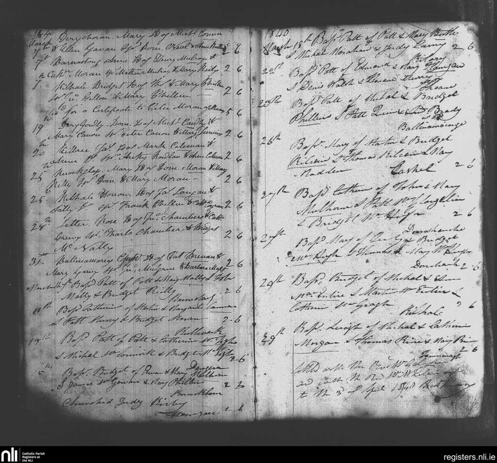 Islandeady; County of Mayo; Archdiocese of Tuam. Baptisms, Mar. 1840