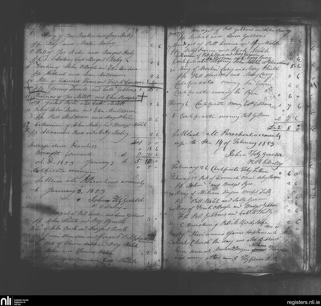 Islandeady; County of Mayo; Archdiocese of Tuam. Baptisms, Dec. 1852 to Mar. 1853
