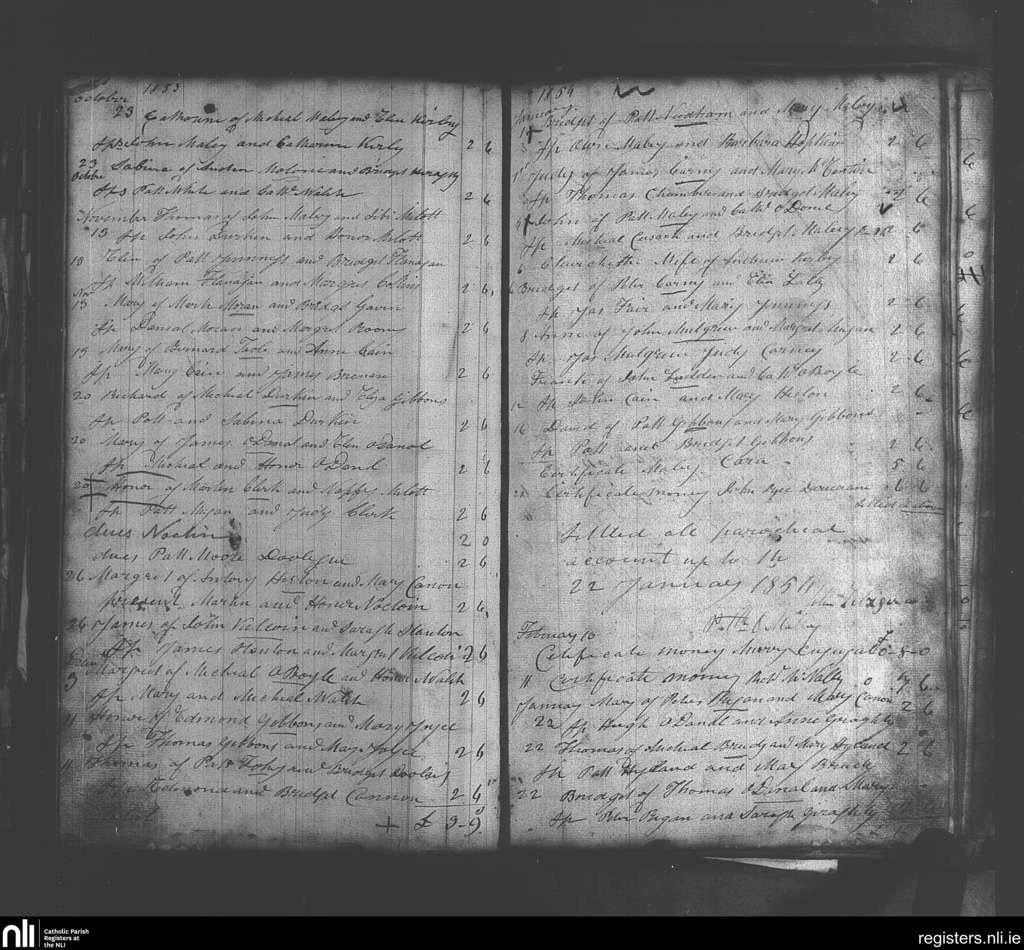 Islandeady; County of Mayo; Archdiocese of Tuam. Baptisms, Oct. 1853 to Feb. 1854