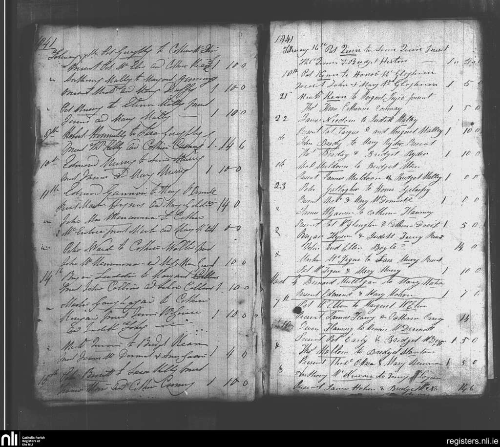Islandeady; County of Mayo; Archdiocese of Tuam. Marriages, Feb. 1841 to Mar. 1841