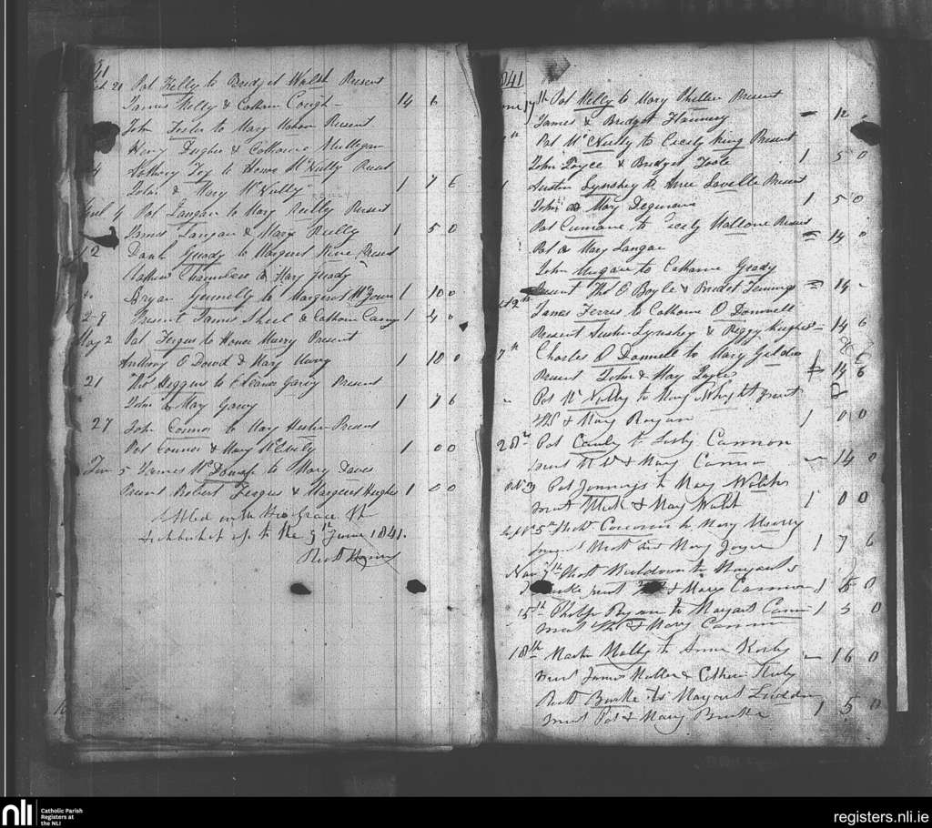 Islandeady; County of Mayo; Archdiocese of Tuam. Marriages, Mar. 1841 to Nov. 1841