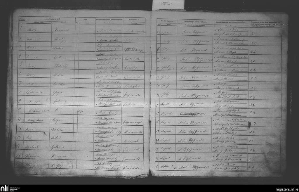 Islandeady; County of Mayo; Archdiocese of Tuam. Baptisms, June 1869 to Sep. 1869
