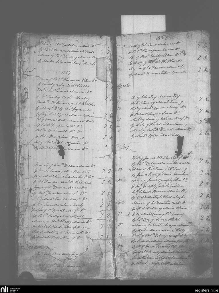 Keelogues; County of Mayo; Archdiocese of Tuam. Baptisms, Dec. 1856 to May 1857