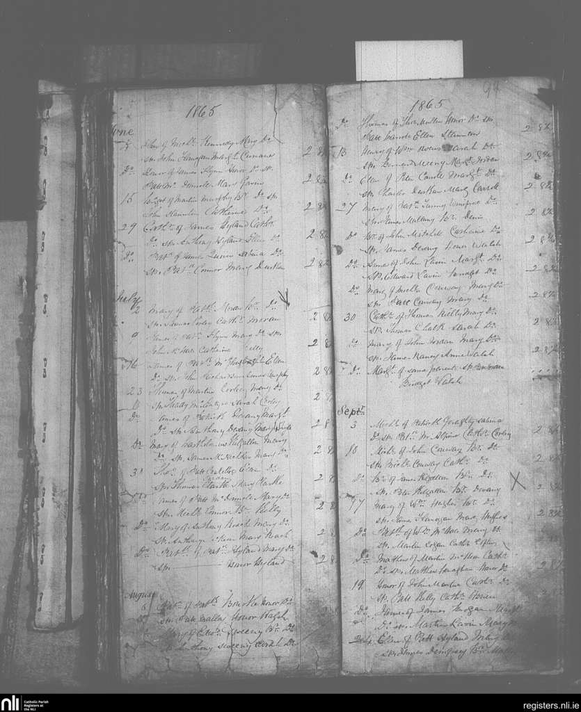 Keelogues; County of Mayo; Archdiocese of Tuam. Baptisms, June 1865 to Sep. 1865