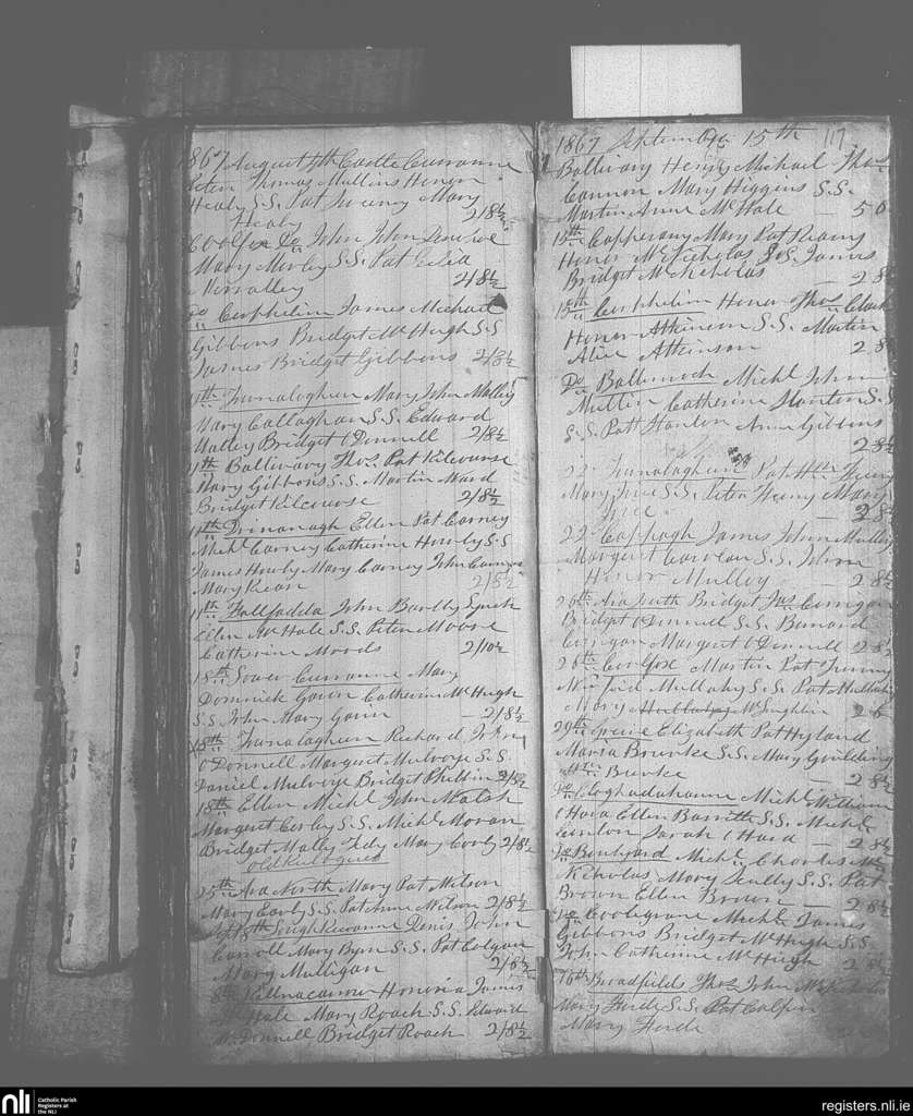 Keelogues; County of Mayo; Archdiocese of Tuam. Baptisms, Aug. 1867 to Sep. 1867