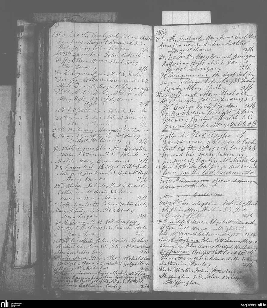 Keelogues; County of Mayo; Archdiocese of Tuam. Baptisms, Sep. 1868 to Nov. 1868