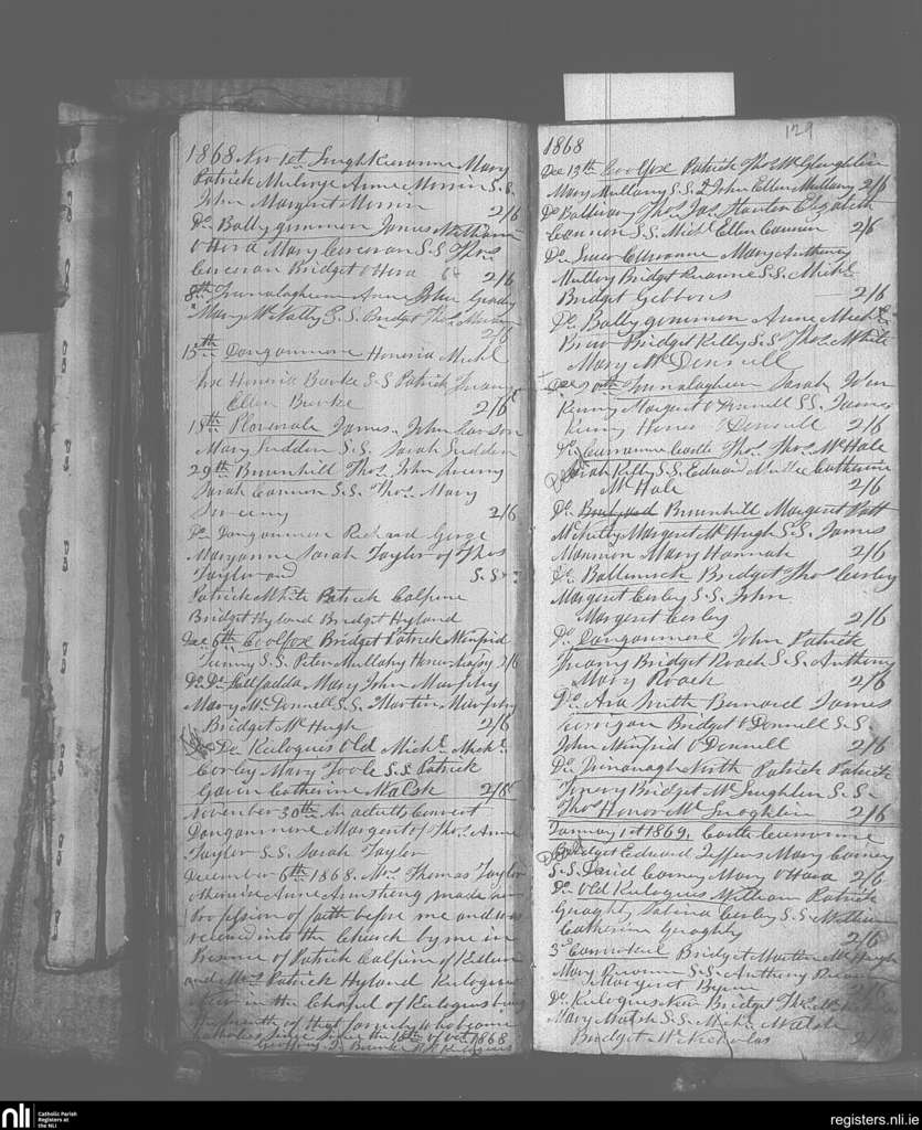 Keelogues; County of Mayo; Archdiocese of Tuam. Baptisms, Nov. 1868 to Jan. 1869