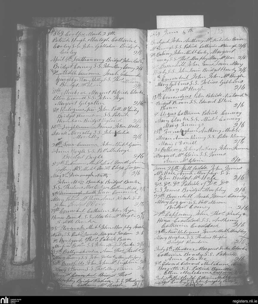 Keelogues; County of Mayo; Archdiocese of Tuam. Baptisms, Mar. 1869 to July 1869