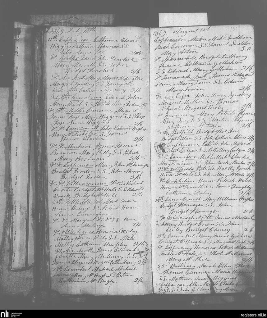 Keelogues; County of Mayo; Archdiocese of Tuam. Baptisms, July 1869 to Aug. 1869