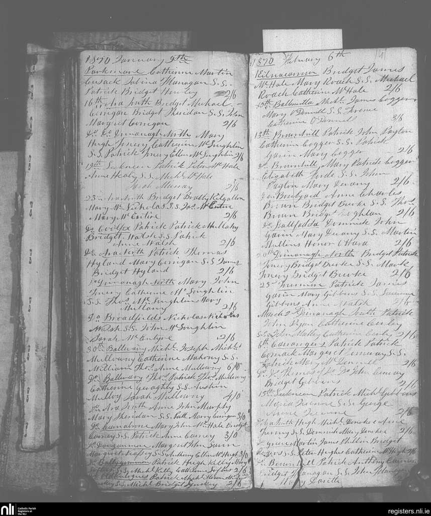 Keelogues; County of Mayo; Archdiocese of Tuam. Baptisms, Jan. 1870 to Mar. 1870