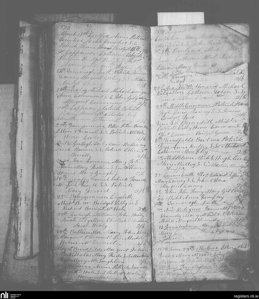 Keelogues; County of Mayo; Archdiocese of Tuam. Baptisms, Mar. 1870 to June 1870