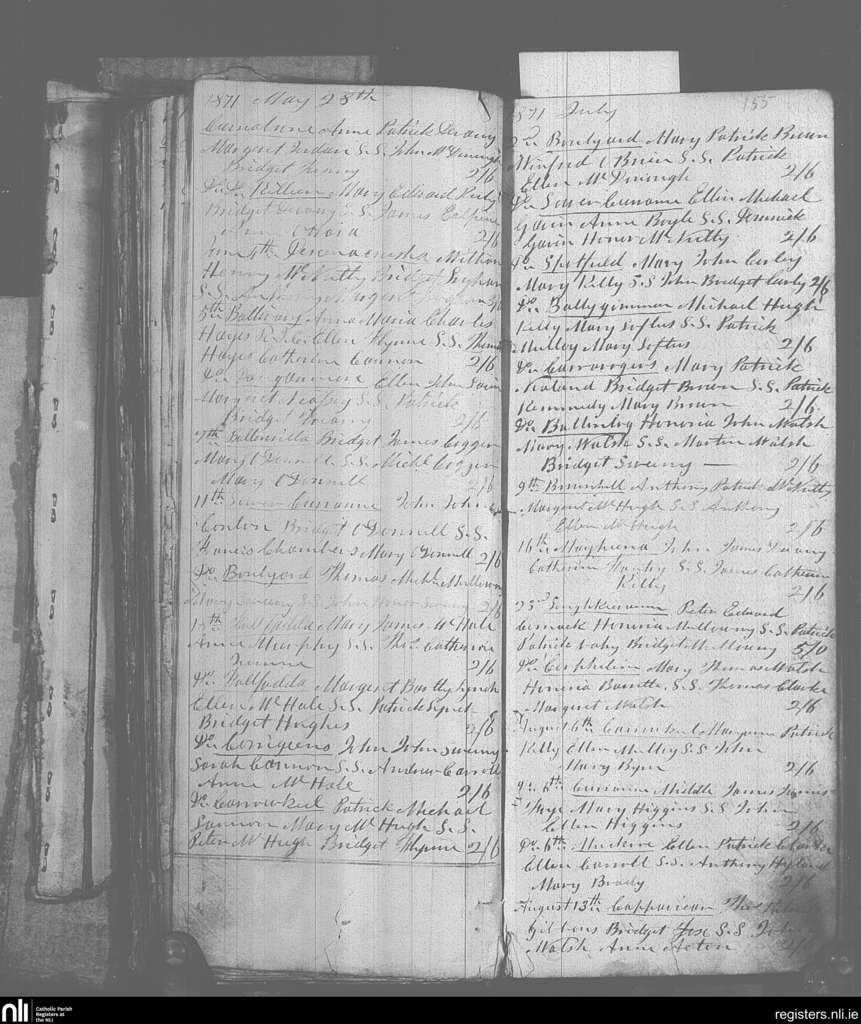 Keelogues; County of Mayo; Archdiocese of Tuam. Baptisms, May 1871 to Aug. 1871