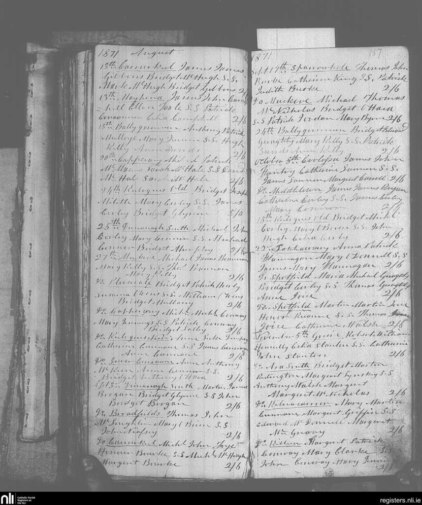 Keelogues; County of Mayo; Archdiocese of Tuam. Baptisms, Aug. 1871 to Nov. 1871