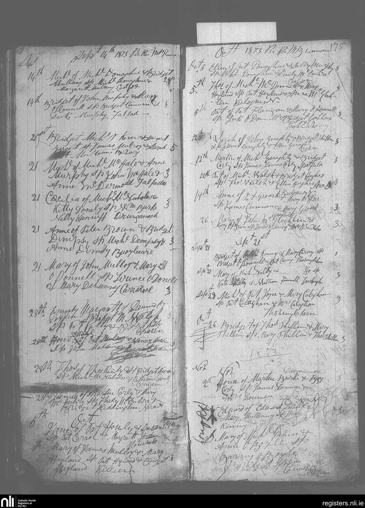 Keelogues; County of Mayo; Archdiocese of Tuam. Baptisms, Sep. 1873 to Nov. 1873