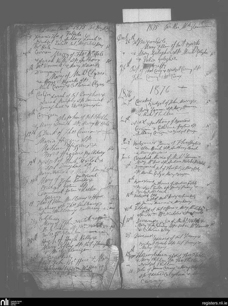 Keelogues; County of Mayo; Archdiocese of Tuam. Baptisms, Dec. 1875 to Jan. 1876