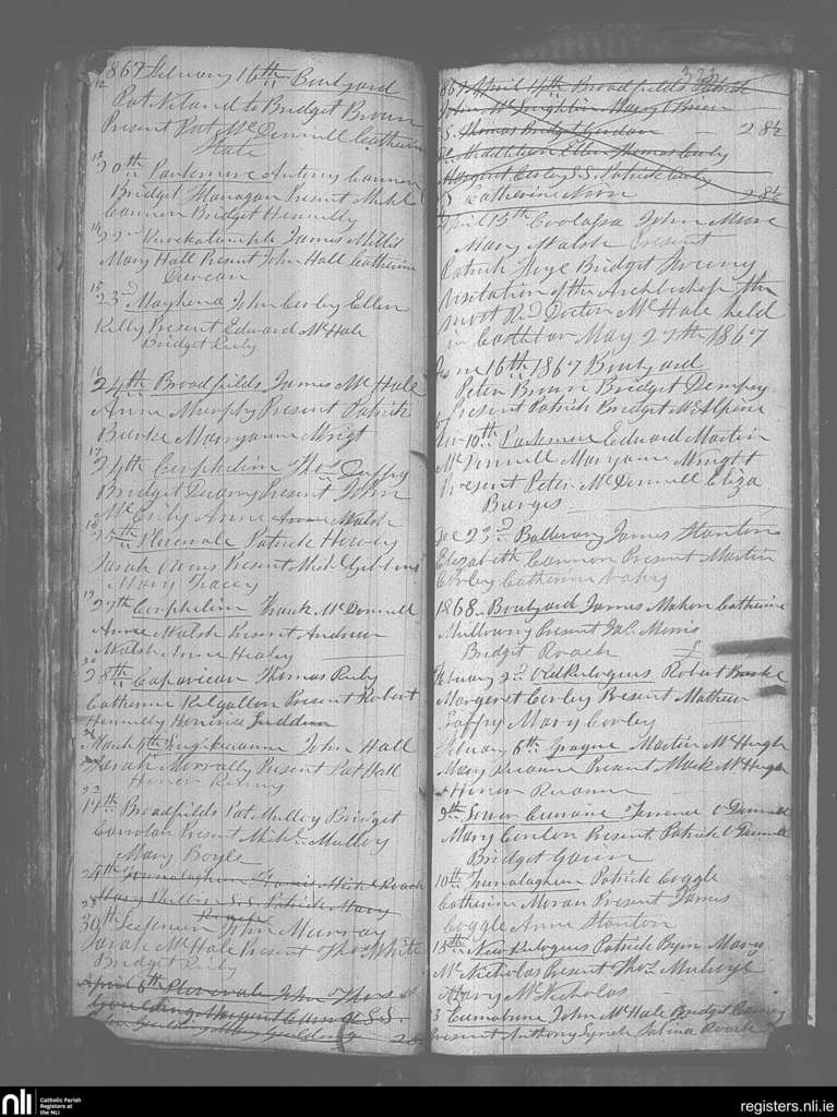 Keelogues; County of Mayo; Archdiocese of Tuam. Marriages, Feb. 1867 to Feb. 1868
