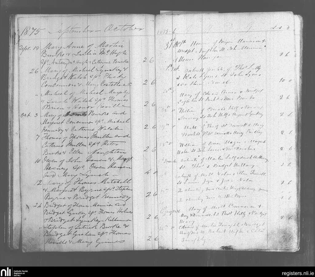 Kilconly; County of Galway; Archdiocese of Tuam. Baptisms, Sep. 1875 to Jan. 1876
