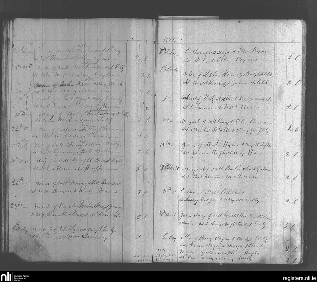Kilconly; County of Galway; Archdiocese of Tuam. Baptisms, Aug. 1876 to May 1877