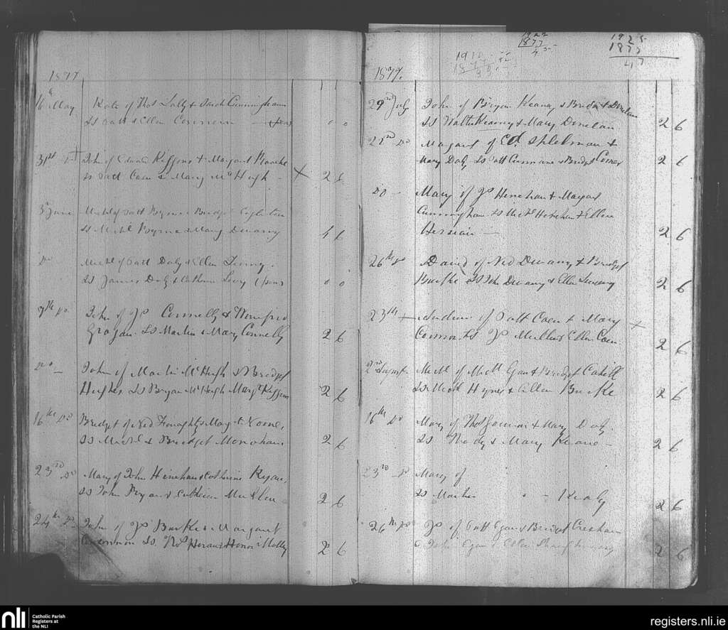 Kilconly; County of Galway; Archdiocese of Tuam. Baptisms, May 1877 to Aug. 1877