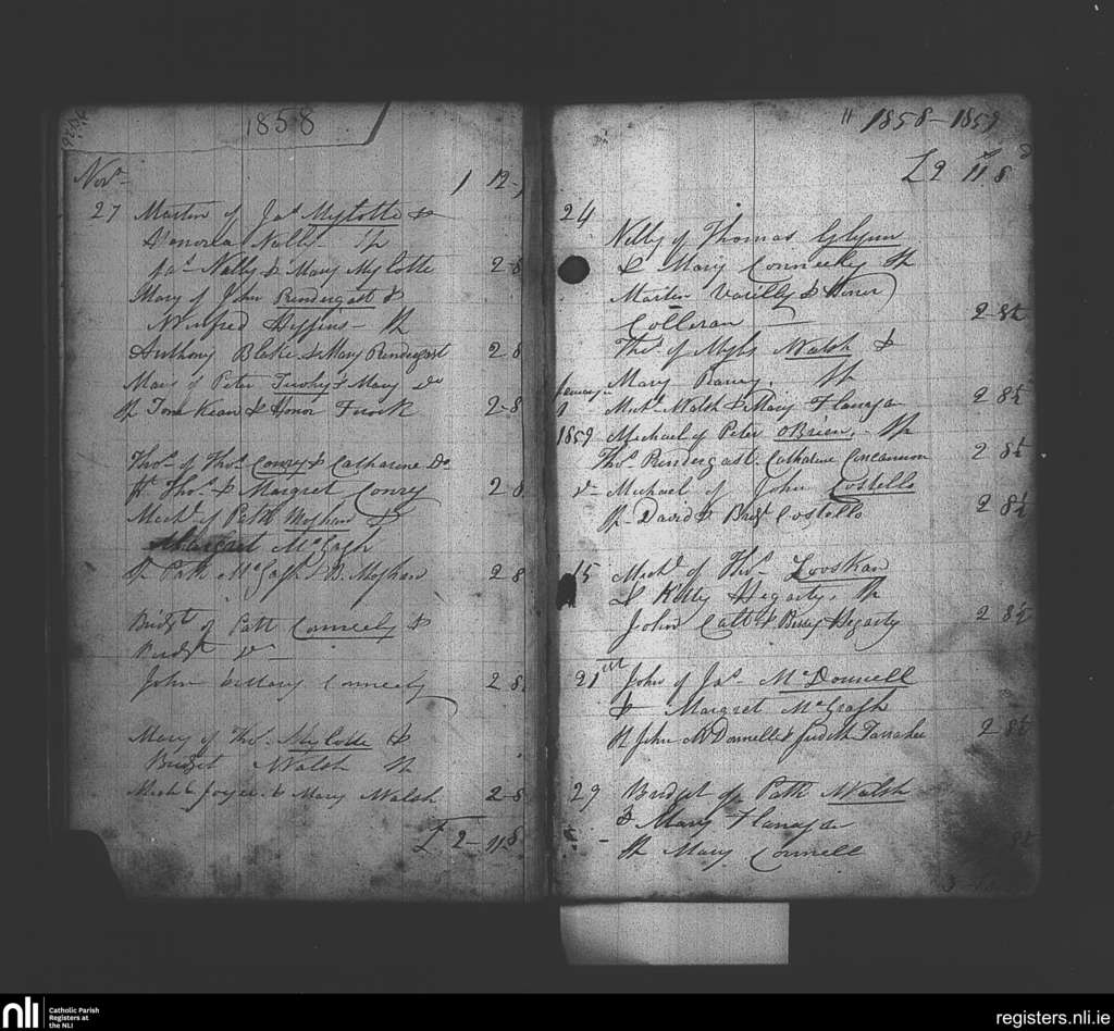 Kilcommon and Robeen; County of Mayo; Archdiocese of Tuam. Baptisms, Nov. 1858 to Jan. 1859