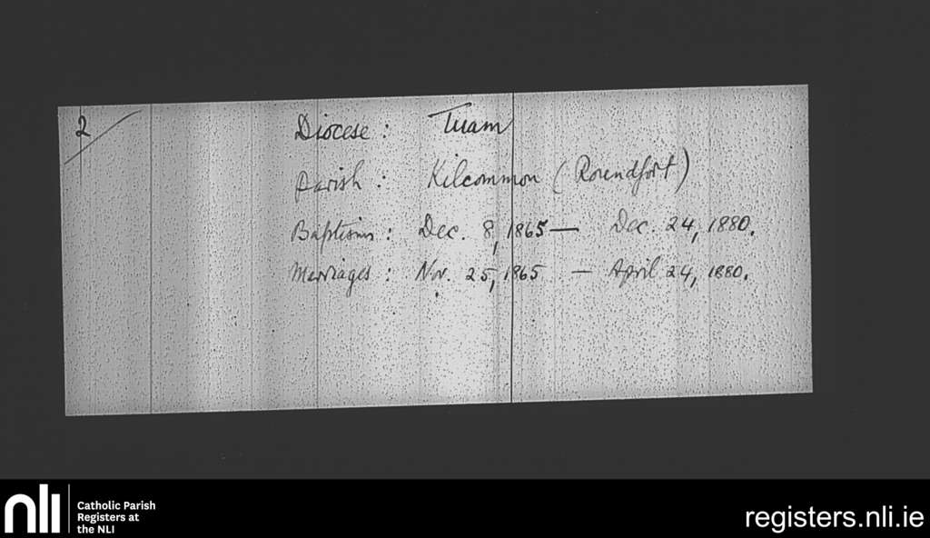 Kilcommon and Robeen; Contae Mayo; Ard-Deoise Tuam. Baptisms, Marriages
