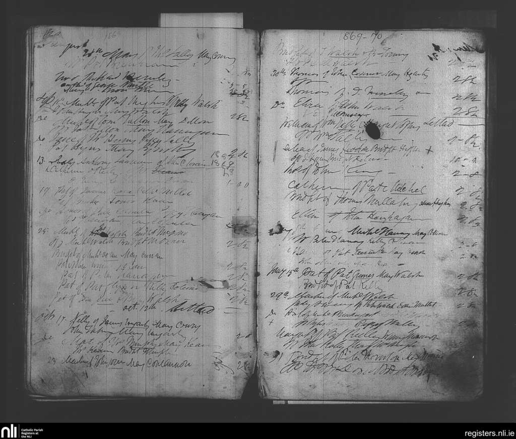 Kilcommon and Robeen; County of Mayo; Archdiocese of Tuam. Baptisms, Aug. 1869 to Jan. 1870
