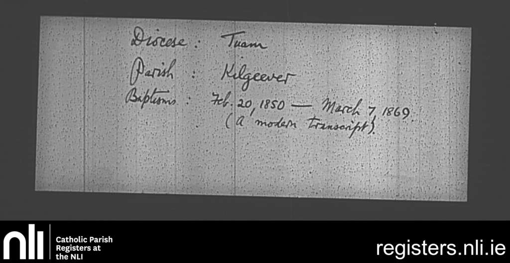 Kilgeever; County of Mayo; Archdiocese of Tuam. Baptisms