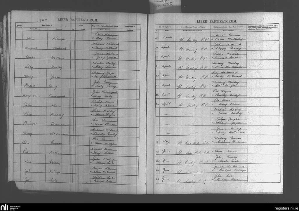 Kilgeever; County of Mayo; Archdiocese of Tuam. Baptisms, Apr. 1850 to June 1850